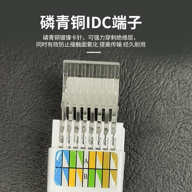 5、IDC打线柱夹子为磷青铜,适用于22,24及26AWG(0.64,0.5及0.4mm)线缆,耐用性为250次插拔。